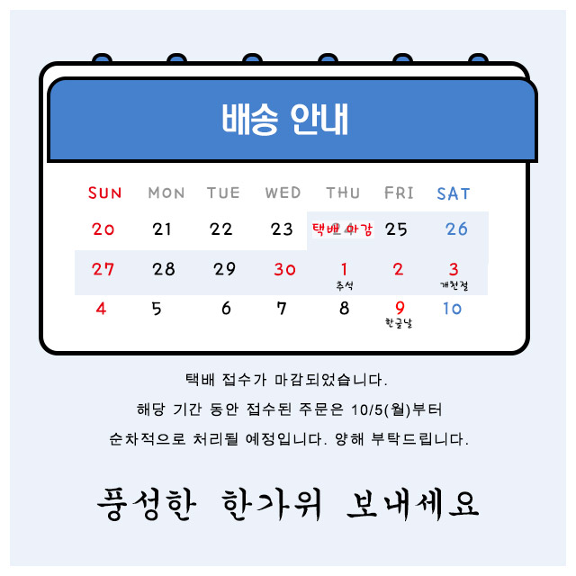 2. 해외구매 특성상 주문에서 배송까지는 평균 10~15일이 소요됩니다. 간혹 현지 제품 수급에 따라 부득이하게 시일이 더 소요 될 수 있으니 구매시 좀 더 여유있게 주문하시길 권합니다.