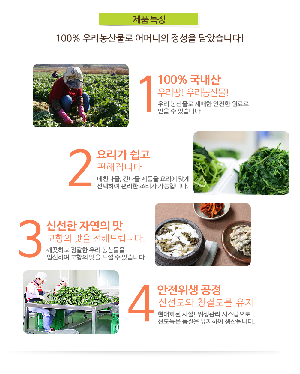 포장단위별 내용물의 용량(중량), 수량, 크기 고사리, 도라지, 시래기 각 300g